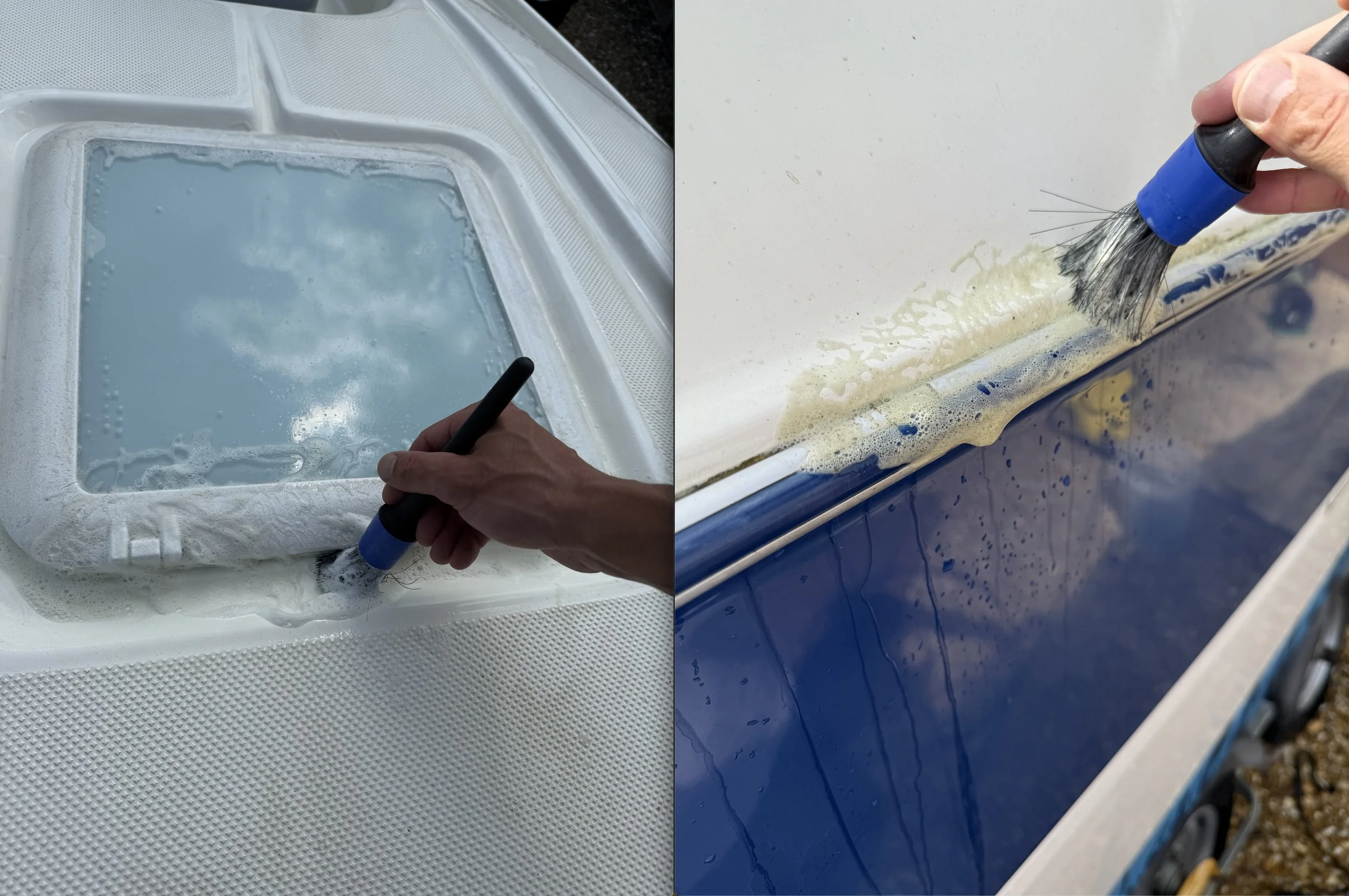 Gel Coat Enhancement & Marine Wax including a full clean of the top deck, cockpit area as well as all leather seating.